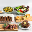 Ready-made Premium Braai Box, Suited For Four People: A thoughtfully curated collection of our finest farm butchery products for a memorable braai, including ribeye, braai rashers, and boerewors. The box is complete with sides of potato salad, Greek salad, and garlic bread, as well as our special Asian BBQ braai sauce and smoked chilli salt.