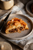 Tender, free-range lamb slow-roasted to perfection in a rich, savoury gravy, infused with fresh herbs and garden vegetables. Encased in a golden, buttery pastry, this hearty pie delivers comforting, homestyle flavour in every bite — a true classic done right.
